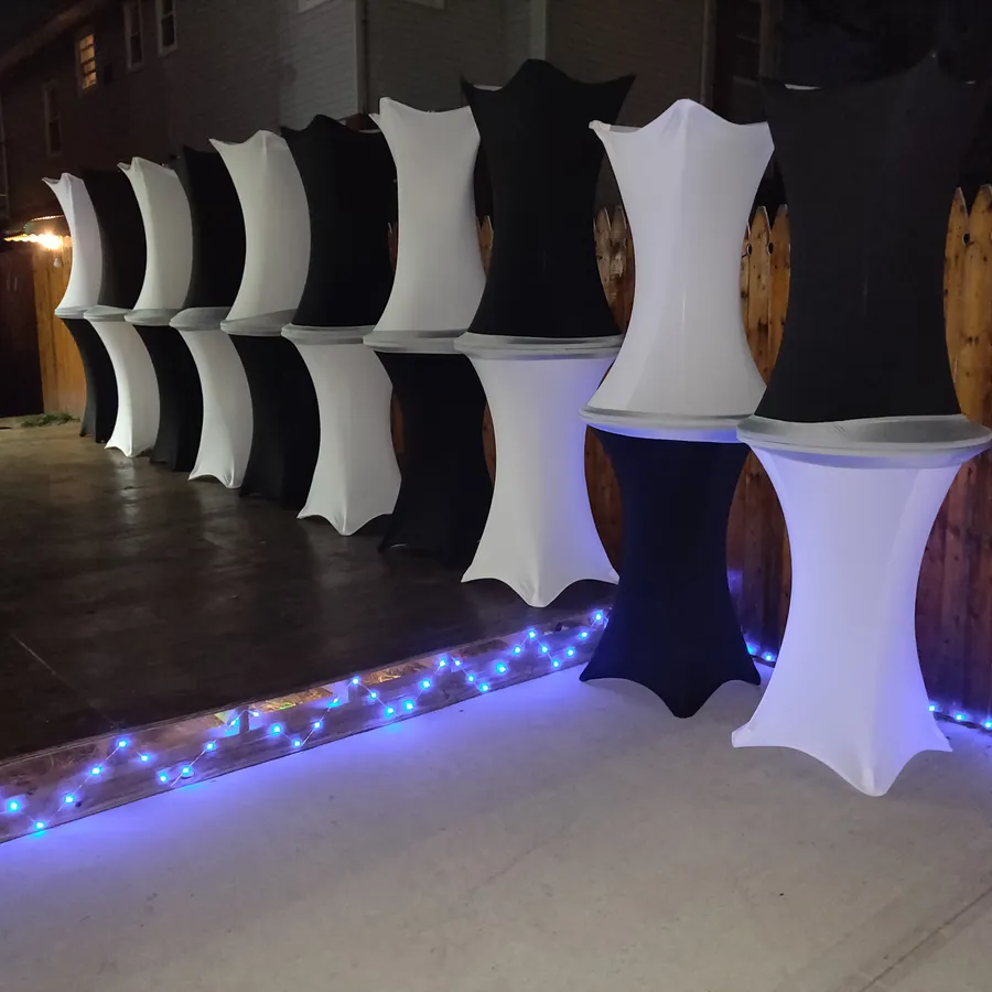 Bar Set 4: 20ft. Bar, 10X20 Pop up Tent, Lights, 25 Cocktail Tables. $1000